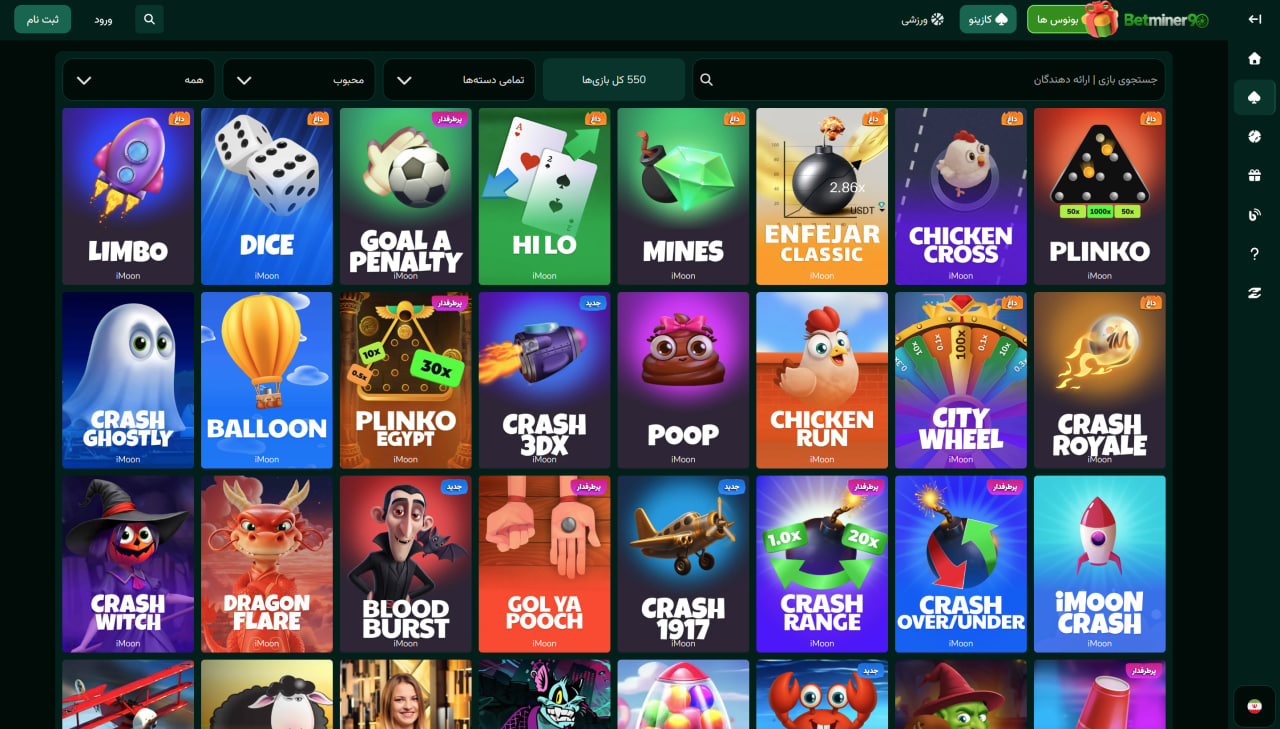 معمولا در سمت راست صفحه بررسی سایت به بازی‌های انفجار و یا تمامی بخش‌های موجود در سمت چپ صفحه دسترسی دارید.