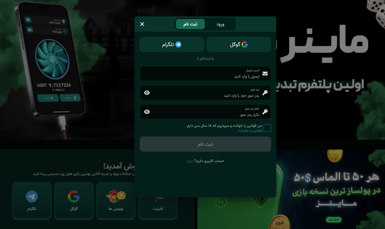 ثبت نام در بت ماینر 90
