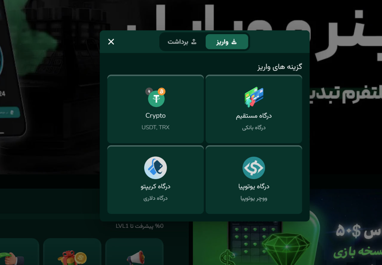 در این سایت در مجموع برای واریز و همچنین برداشت به سه روش دسترسی دارید. روش اولی که در این ست وجود دارد مربوط به درگاه بانکی است.