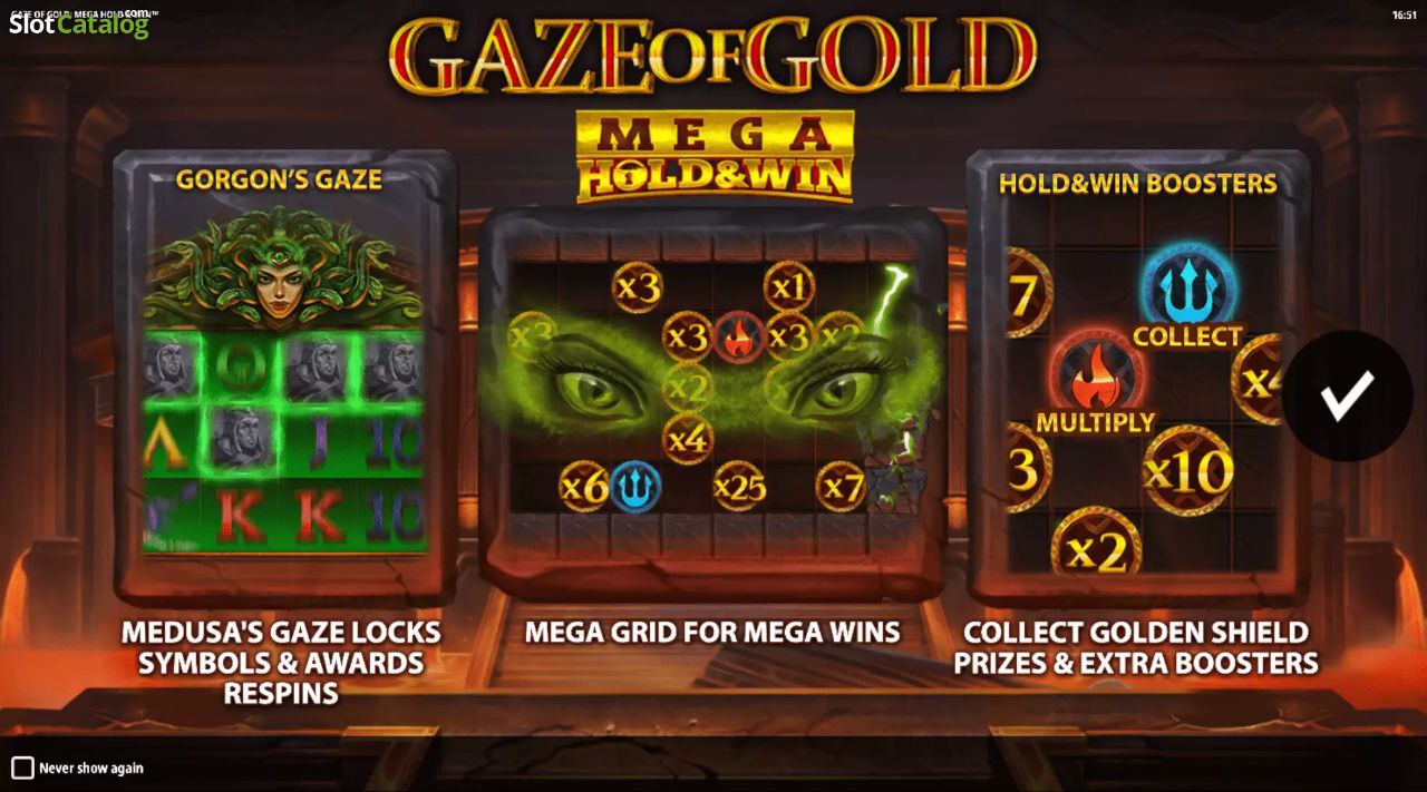 بازی Gaze of Gold شامل ویژگیهای اضافی مانند Gorgon’s Gaze Modifier است که در طول بازی اصلی بهطور تصادفی فعال میشود.