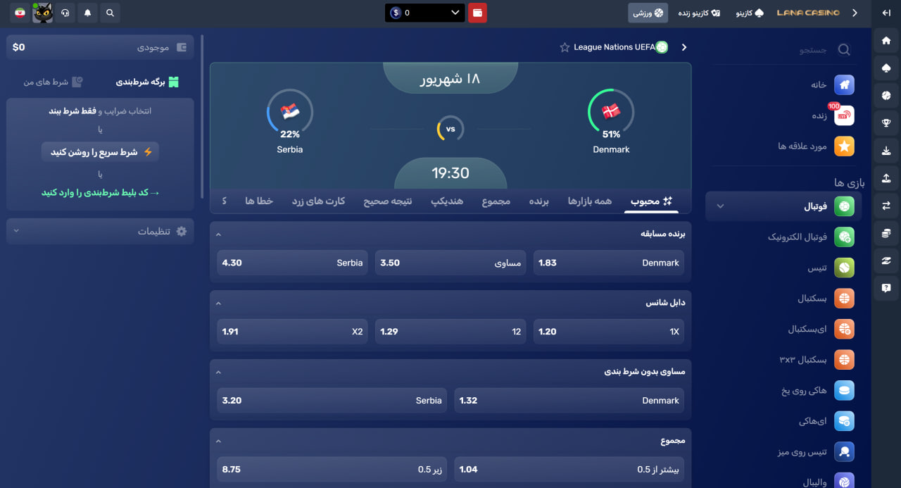 گول اسم این سایت را نخورید ، در سایت لانا کازینو امکان شرط بندی ورزشی نیز وجود دارد.